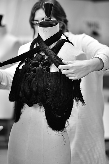 Este sistema de diseño y confección de prendas se basa en un nuevo enfoque de la composición del hilo, en parte «bioinspirado»: el tricotissage, o «tricotar-tejer», a caballo entre el tricotar -un solo hilo- y el tejer, que permite crear un tejido, ensamblado de forma similar al tejido muscular humano.