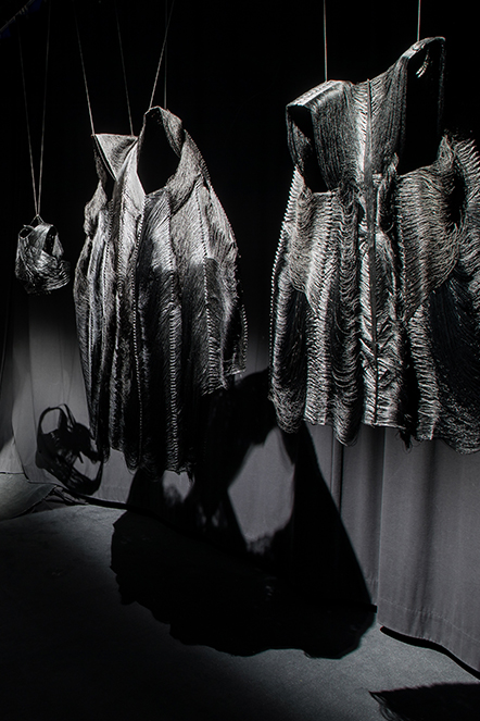 Jeanne Vicerial en colaboración con Jennifer Chambaret, collection Lignes Noires, Clinique Vestimentaire, 2017. © Vivien Bertin.